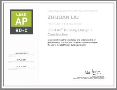 LEED AP即LEED Professional Accreditation,是美國綠色建筑委員會(USGBC)官方認可的LEED認證專家,擁有該資格的個人能夠順利地管理整個LEED認證項目的實施。LEED AP 證書是綠色建筑認證能力的有力證明,能夠證明個人已經透徹地了解綠色建筑的實踐和原則。